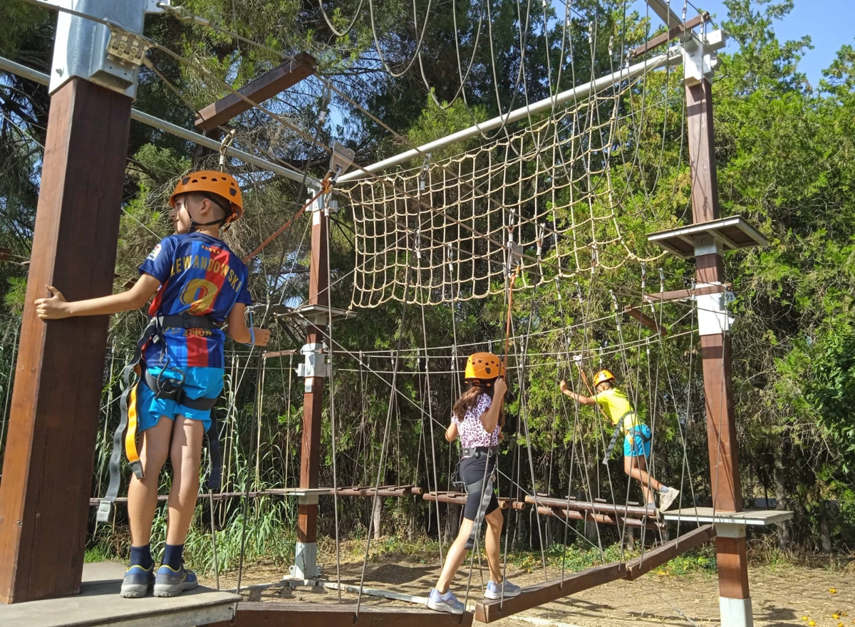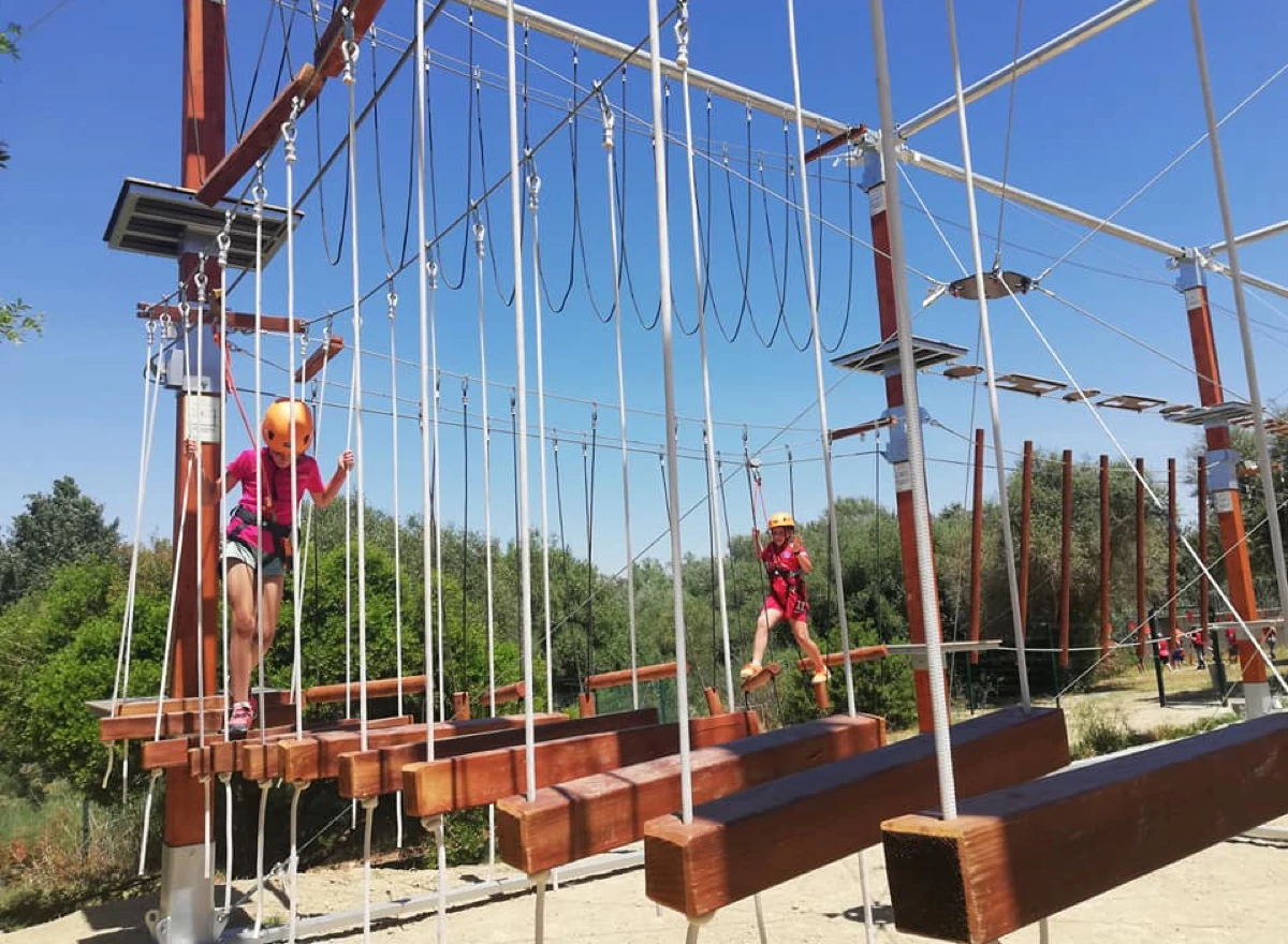 Turismo activo y multiaventura: tirolina, tirolina sobre río, escalada, slackline, tiro con arco, circuito de habilidades y actividades de team-building.